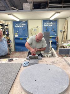 Enkele bijzondere stenen worden door geslepen om vervolgens de binnenkant te polijsten. Op deze manier worden de prachtige kleuren en vormen aan de binnenkant van de natuursteen zichtbaar, hetgeen elke natuursteensoort zo herkenbaar en uniek maakt.